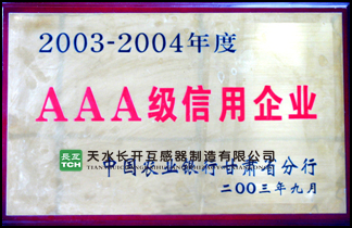 納稅先進戶(互感器 長互 TCH) | 中國農業(yè)銀行 3A級信用企業(yè)(互感器) |