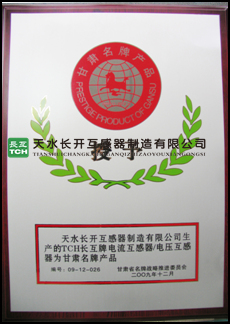 “TCH”天水市知名商標(互感器 TCH) | “長互”甘肅省著名商標(互感器 長互) |