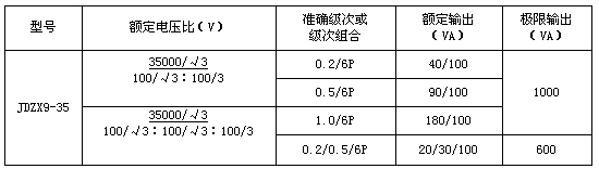 本型電壓互感器采用環(huán)氧樹(shù)脂澆注成型,為支柱式全封閉結(jié)構(gòu),適用于海拔高度1000m及其以下地區(qū),頻率為50Hz,最高工作電壓為42kV的電力系統(tǒng),連接在相與地間做電能測(cè)量及繼電保護(hù)之用;二次測(cè)量繞組輸出100/√3V電壓,供電能測(cè)量用;100/3V電壓為剩余電壓繞組,接成開(kāi)口三角形,用以發(fā)生接地故障時(shí)繼電保護(hù)用。 技術(shù)參數(shù): ·額定絕緣水平:42/95/200 kV。 ·本產(chǎn)品額定電壓、準(zhǔn)確級(jí)次、額定輸出及極限輸出見(jiàn)表。  |